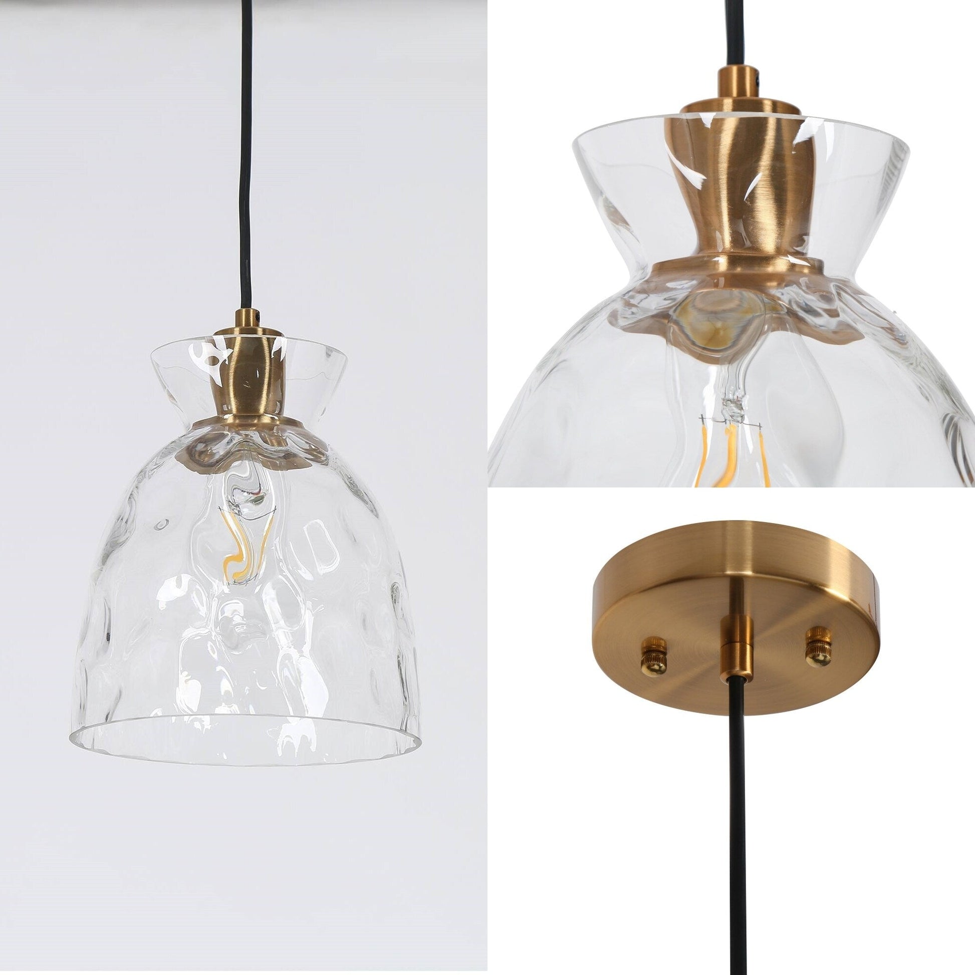 - L'abat-jour en verre d'eau transparent avec une finition en métal laiton chaud ajoute une touche élégante et moderne