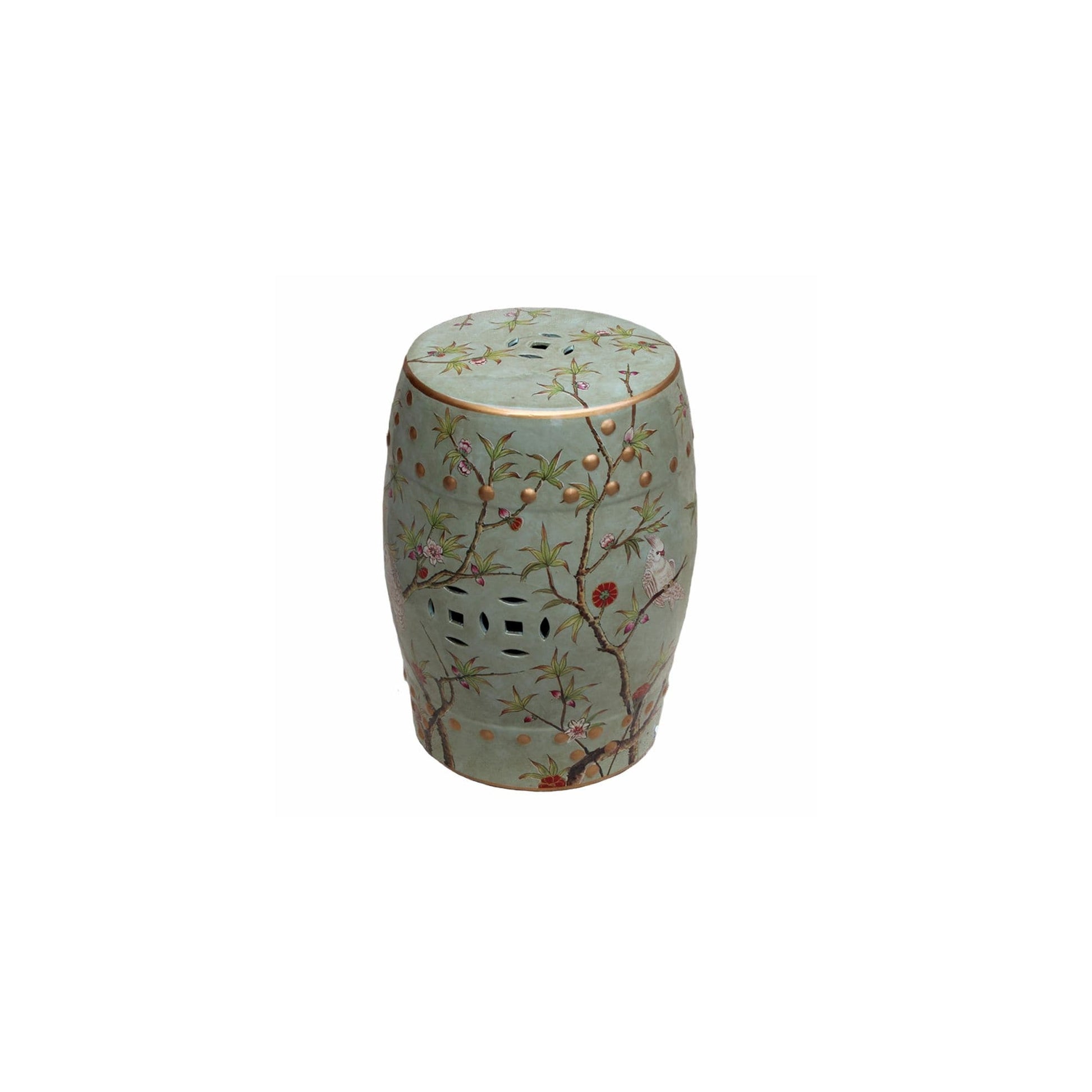 Ajoutez une touche d'élégance et de fonctionnalité à votre espace extérieur avec ce tabouret en porcelaine Famille fait main. Fabriqué en porcelaine lisse, ce tabouret décoratif arbore un motif botanique complexe aux tons dorés, verts et rouges qui lui confèrent une allure élégante. Parfait pour votre terrasse ou votre balcon, ce tabouret peint à la main est une assise polyvalente qui sublimera votre espace.