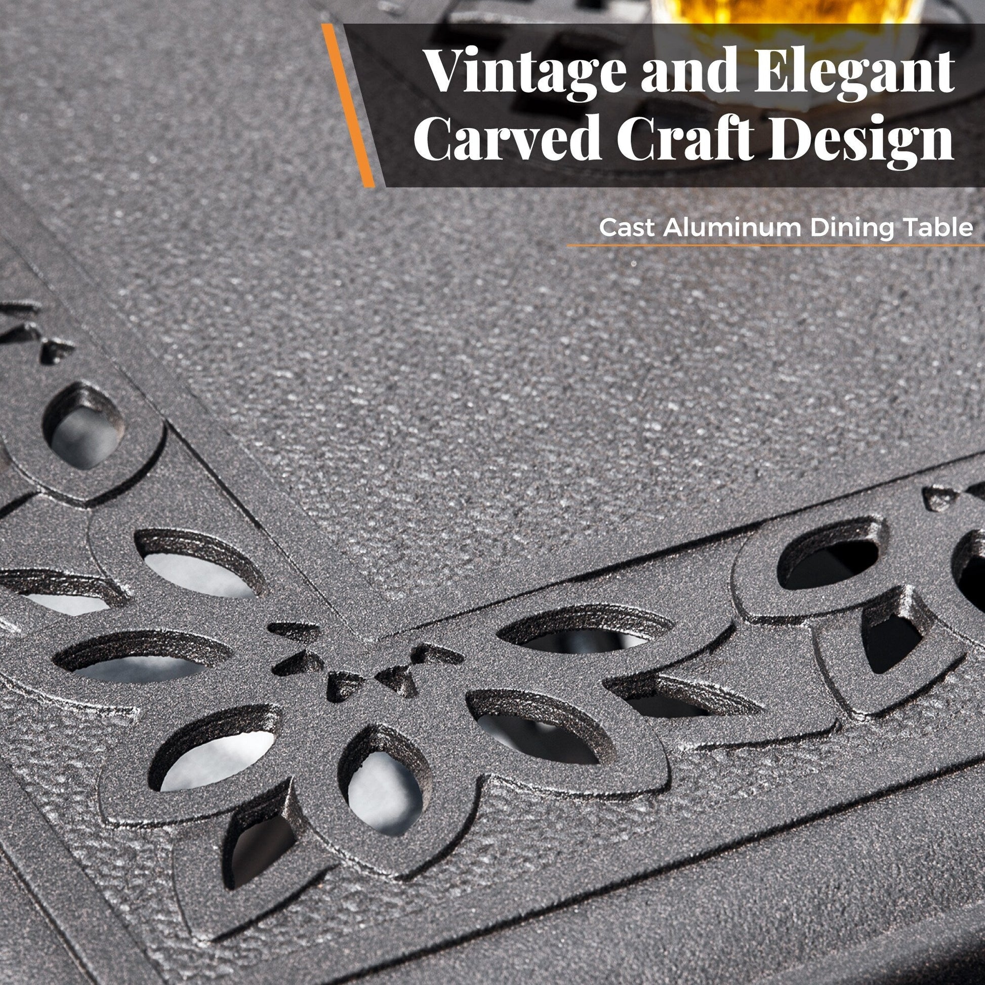 Ensemble de salle à manger de patio en aluminium moulé de 7 pièces de MAISON ARTS avec table rectangulaire extensible et 6 chaises en aluminium moulé