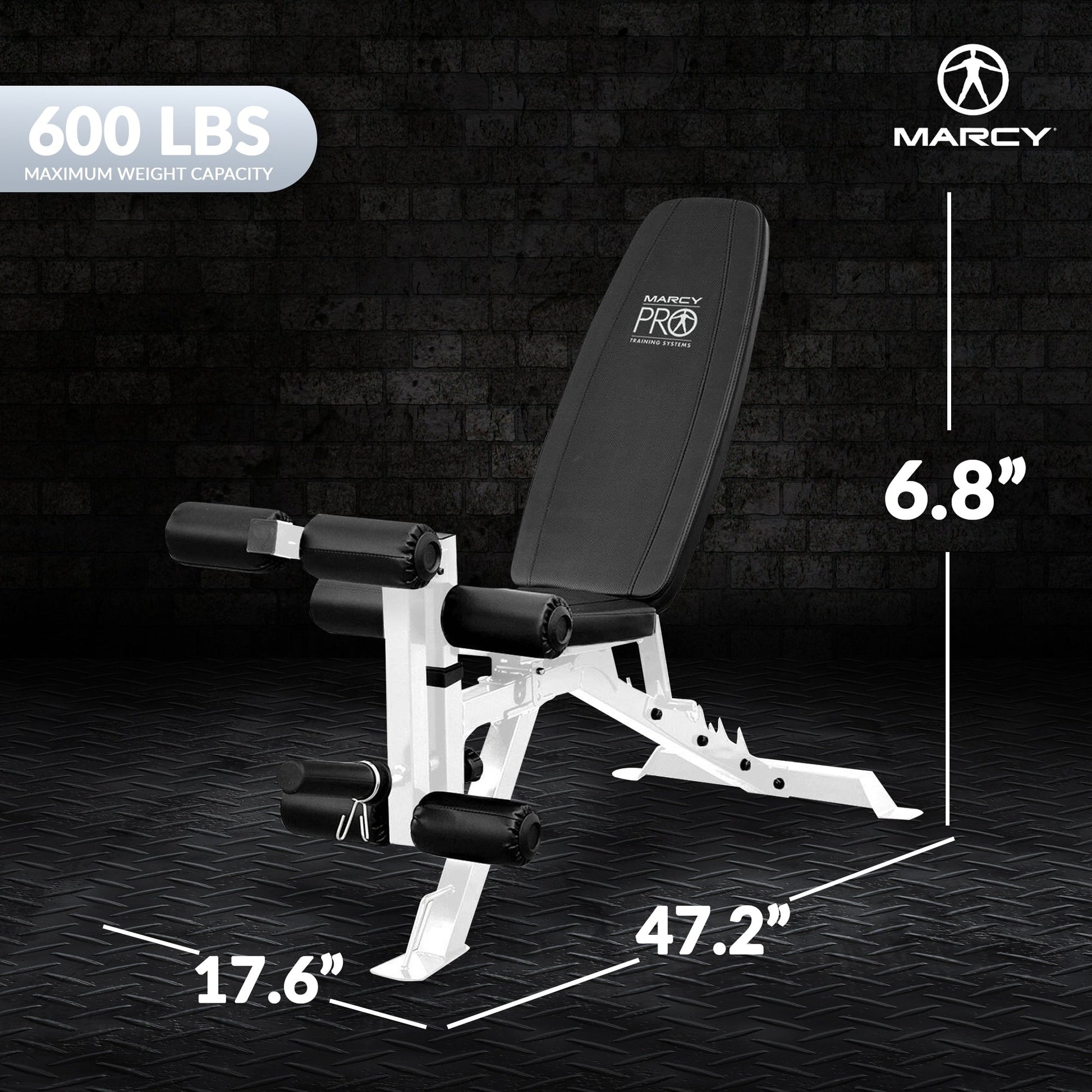 Banc de musculation réglable et polyvalent Marcy en acier avec revêtement en poudre, blanc - 65 x 23 x 46,5 pouces