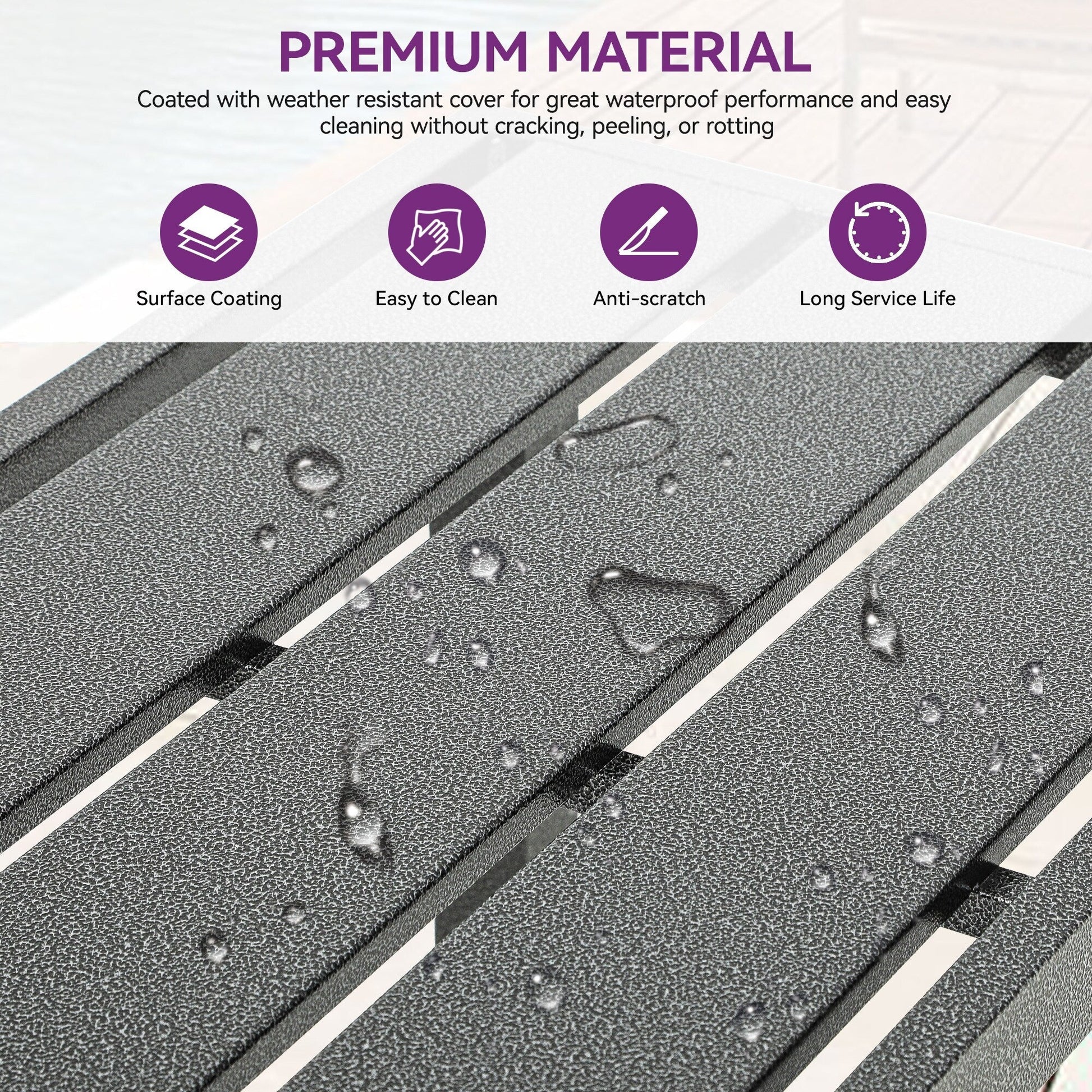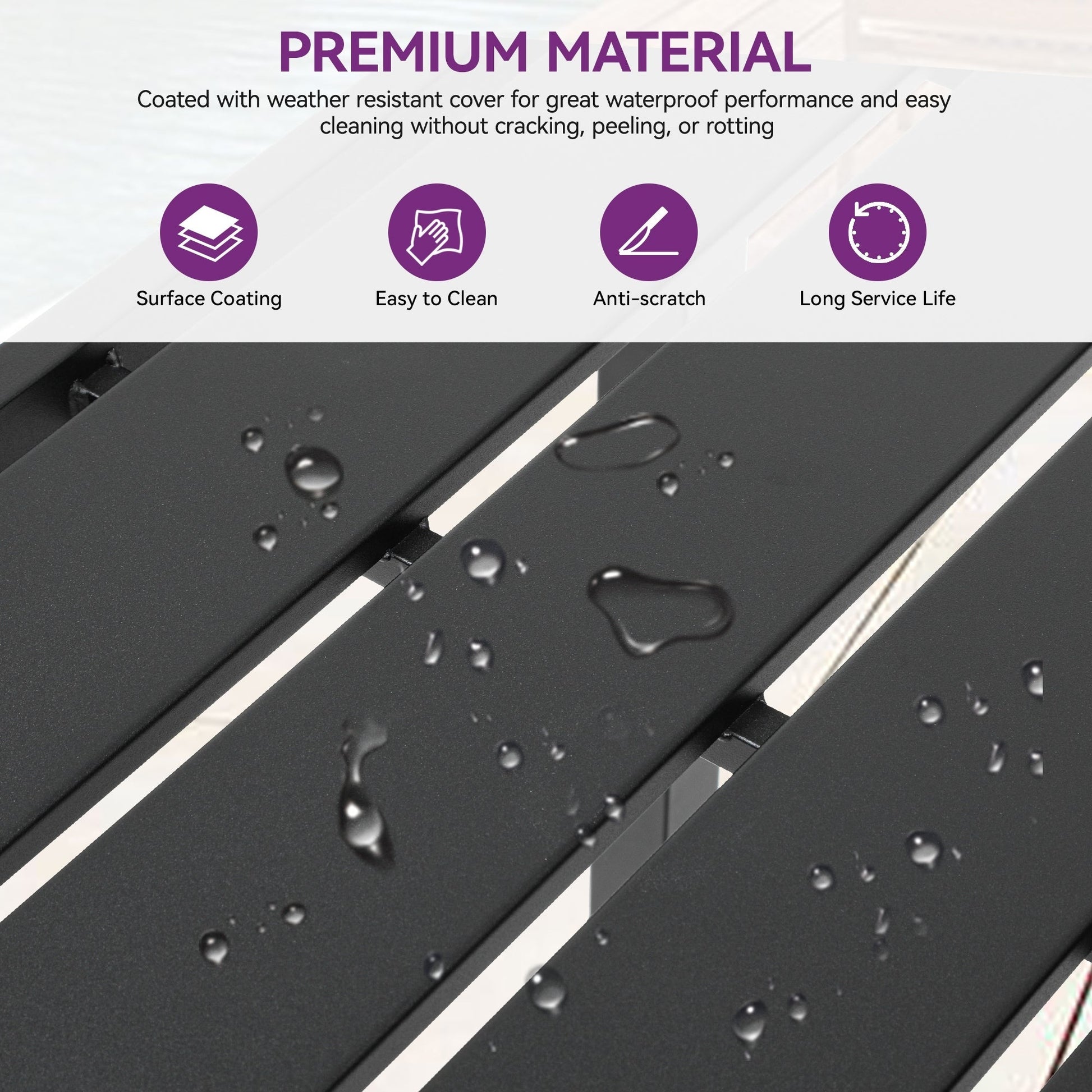 - Facile à nettoyer : le plateau de la table est composé de lattes métalliques avec une finition élégante, permettant d'essuyer les taches sans effort avec un chiffon.