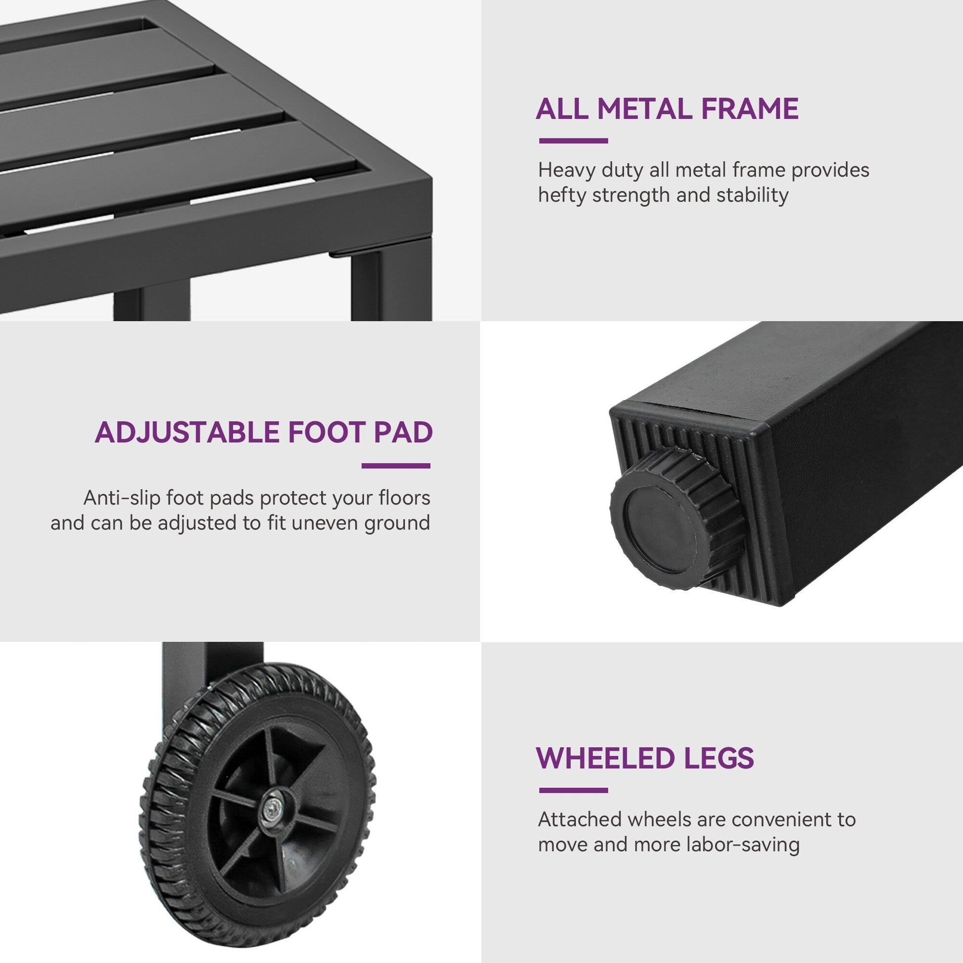 - Durable : Grâce à sa construction en métal, il résiste aux intempéries et peut être utilisé toute l'année et dure beaucoup plus longtemps que les alternatives en bois ou en plastique.