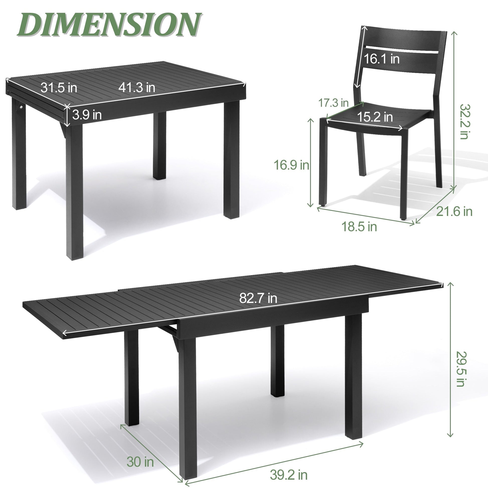 Rendez l'été encore plus spécial avec cet ensemble de salle à manger d'extérieur en aluminium de 5, 7 ou 9 pièces. Avec sa table et ses chaises extensibles, cet ensemble est conçu pour accueillir des invités inattendus tout en optimisant l'espace, ce qui le rend idéal pour les petits espaces extérieurs. Son design moderne apporte une touche chic à tout espace extérieur et rehausse la décoration de votre terrasse, idéal pour les repas et réceptions en plein air.