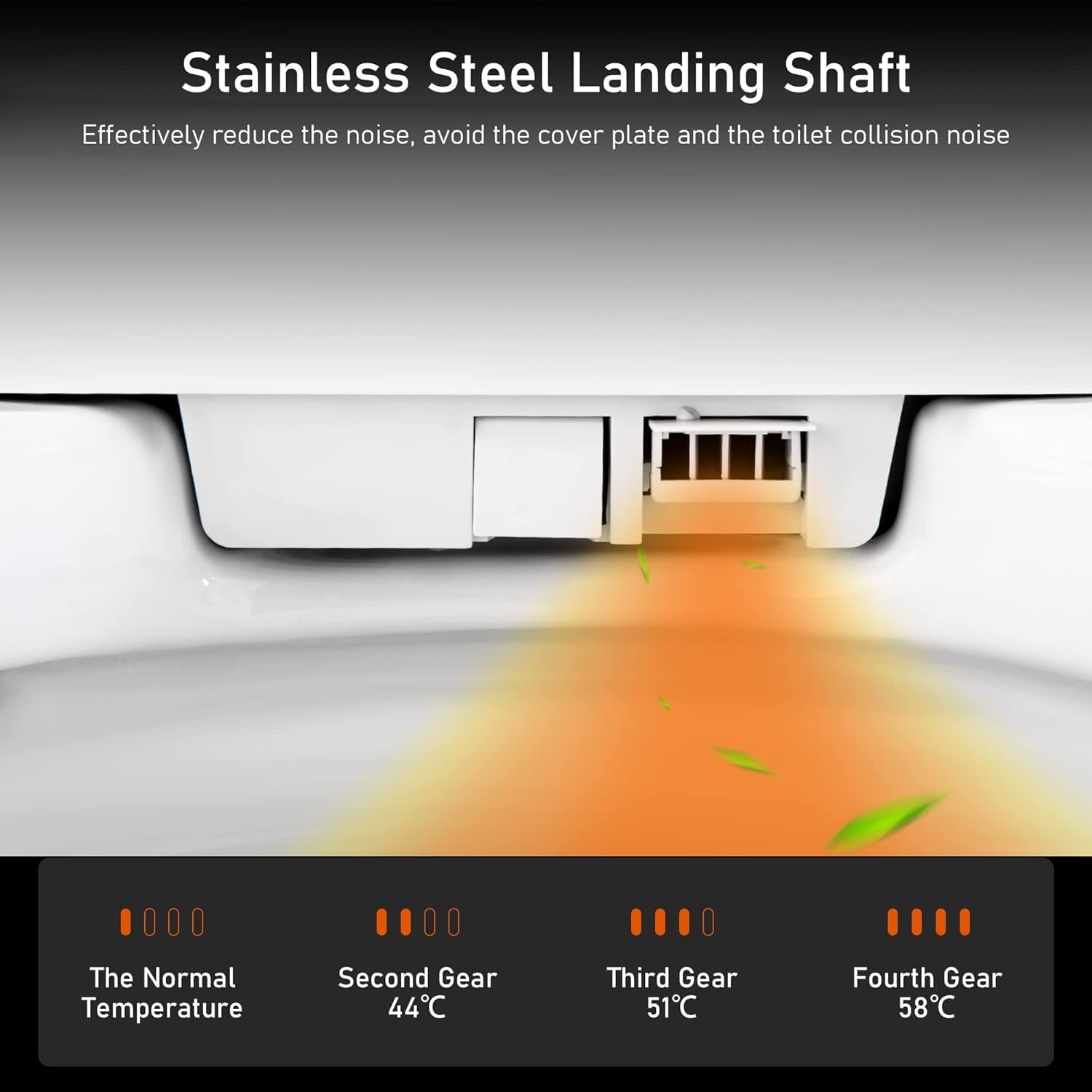 - Toilettes intelligentes Morden : ouverture et fermeture automatiques de l'abattant, ouverture de l'abattant par capteur de pied, siège chauffant, chasse d'eau automatique, chasse d'eau sans alimentation, température réglable, buse autonettoyante en acier inoxydable, veilleuse douce, système de purification d'air, eau chaude instantanée et sèche-cheveux à air chaud. Profitez d'un confort accru grâce à un écran LED intuitif et une télécommande.