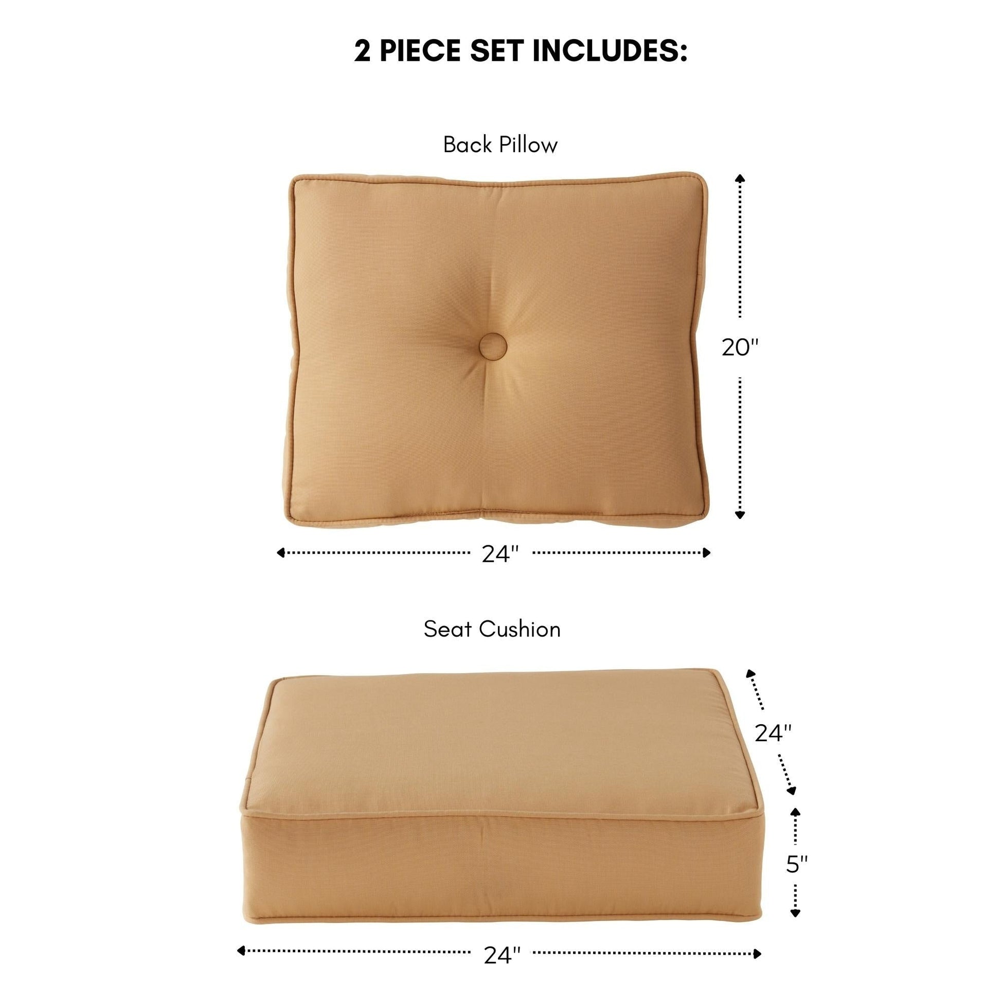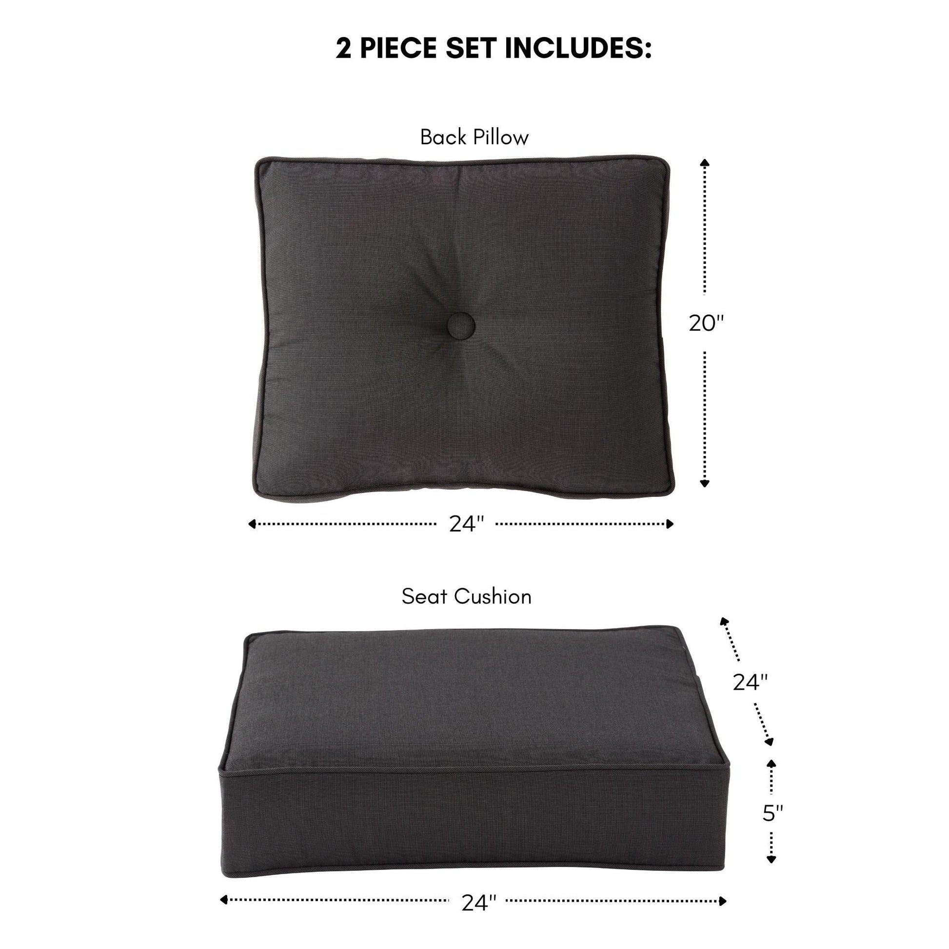 - Coussin de siège : 24 pi L x 24 pi P x 5 pi d'épaisseur