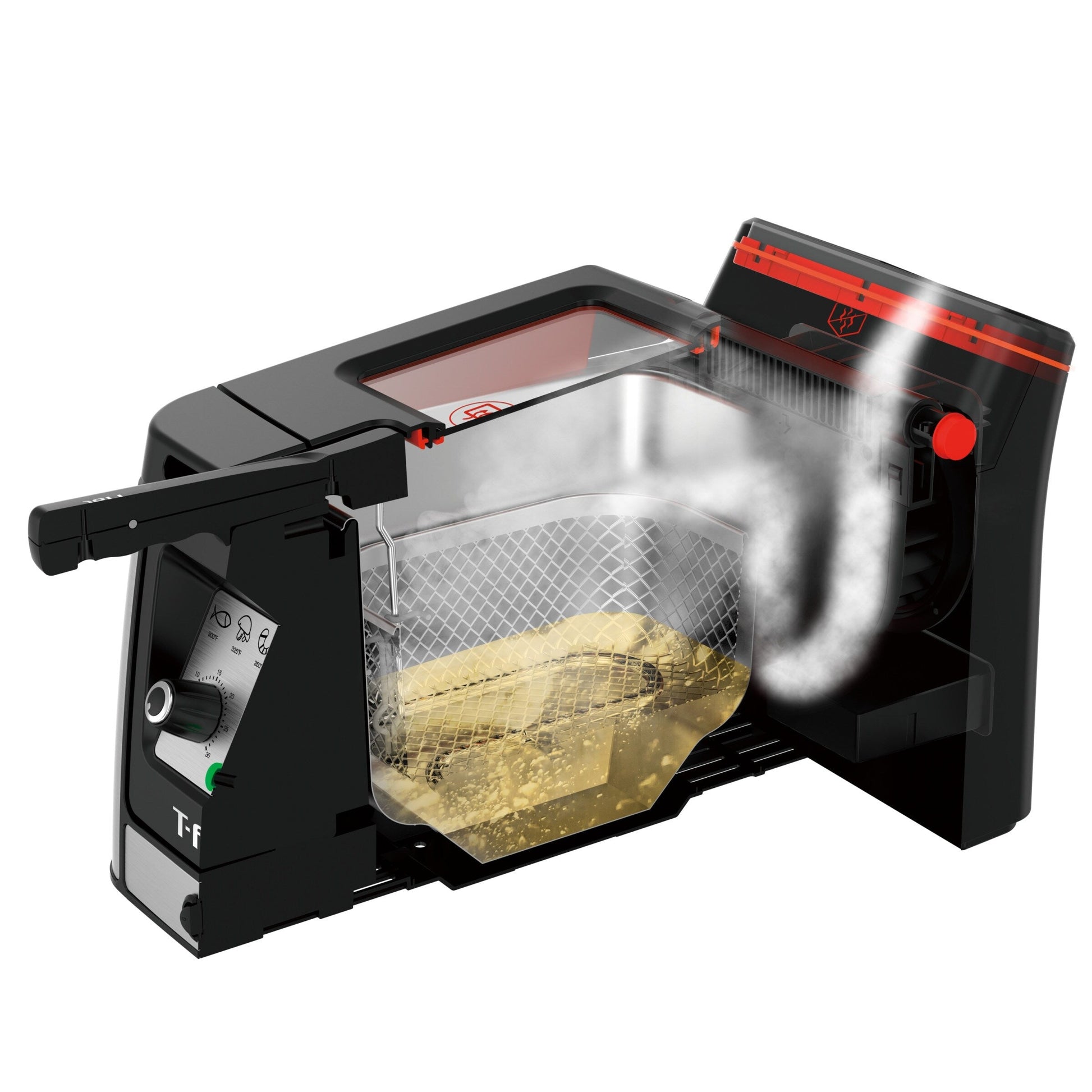 La friteuse sans odeur T-Fal vous permet de savourer vos fritures préférées tout en réduisant les odeurs de 74 % grâce à son système de filtration actif unique. Elle frit parfaitement tous types de viandes, poissons, légumes et tout ce que vous souhaitez frire ! Le contrôle de température variable et la minuterie réglable permettent de cuire les aliments à la température idéale pendant la durée idéale. Le système de filtration active de la friteuse sans odeur T-Fal réduit les odeurs et vous permet de savourer vos fritures préférées sans laisser de mauvaises odeurs dans toute la maison. Son système de sécurité assure une cuisson sans dégâts grâce à la montée et à la descente du panier couvercle fermé. Le couvercle est doté d'un système antibuée pour une visibilité optimale des aliments pendant la cuisson. Sa compacité lui confère un design élégant qui s'intègre parfaitement à tout plan de travail.