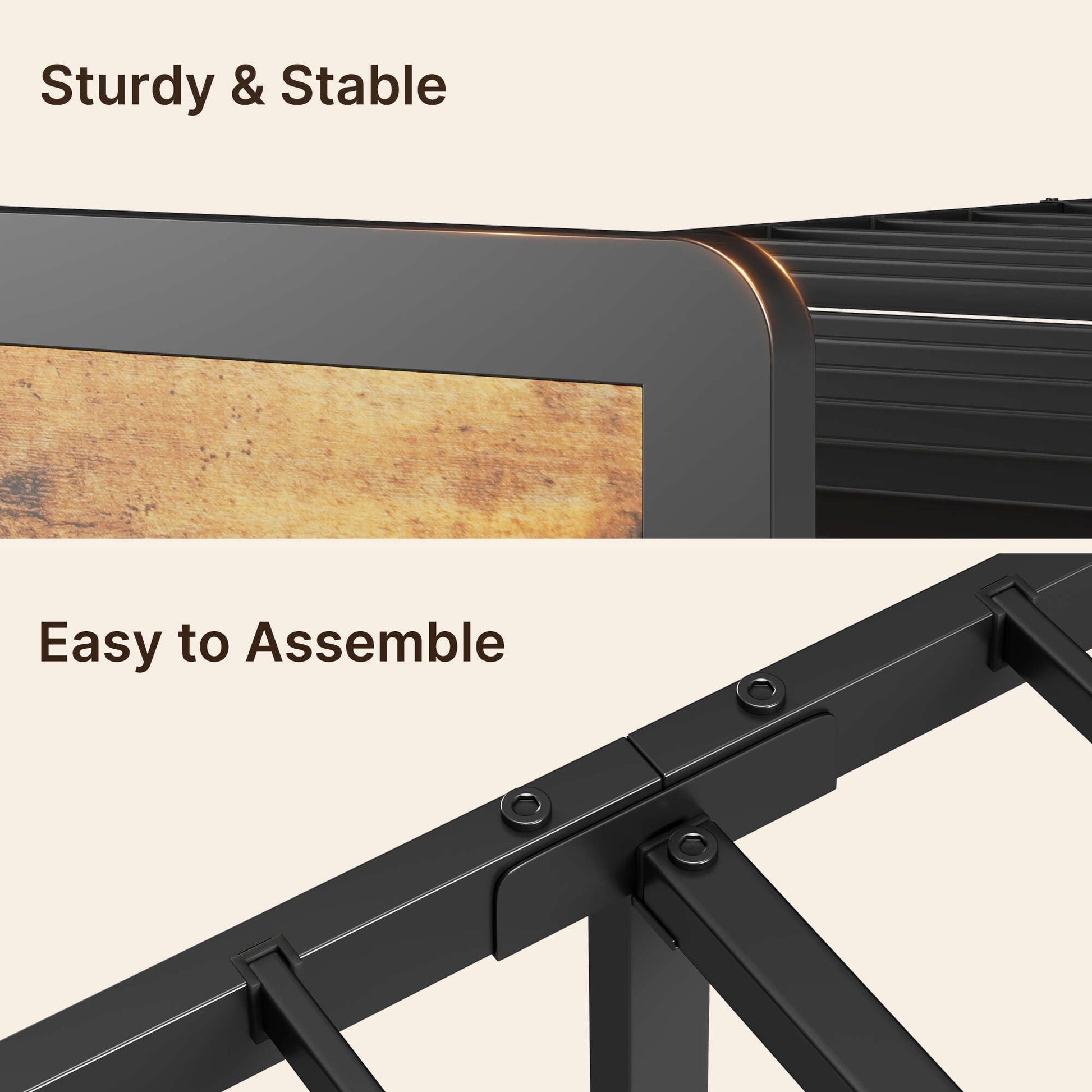 - Assemblage facile : simple à assembler avec tous les outils nécessaires inclus, ce cadre de lit offre un processus d'installation fluide, afin que vous puissiez profiter de votre nouveau lit en un rien de temps.