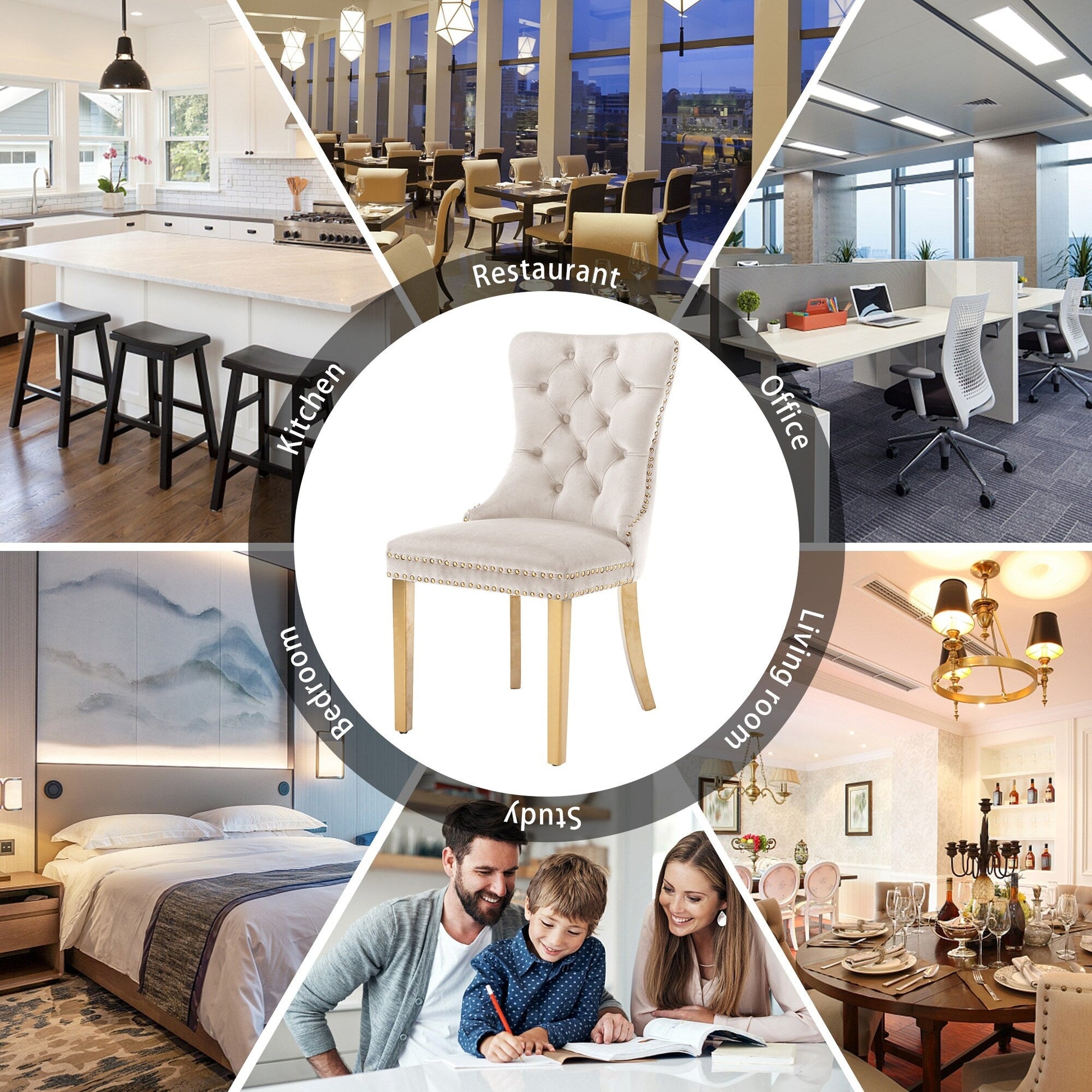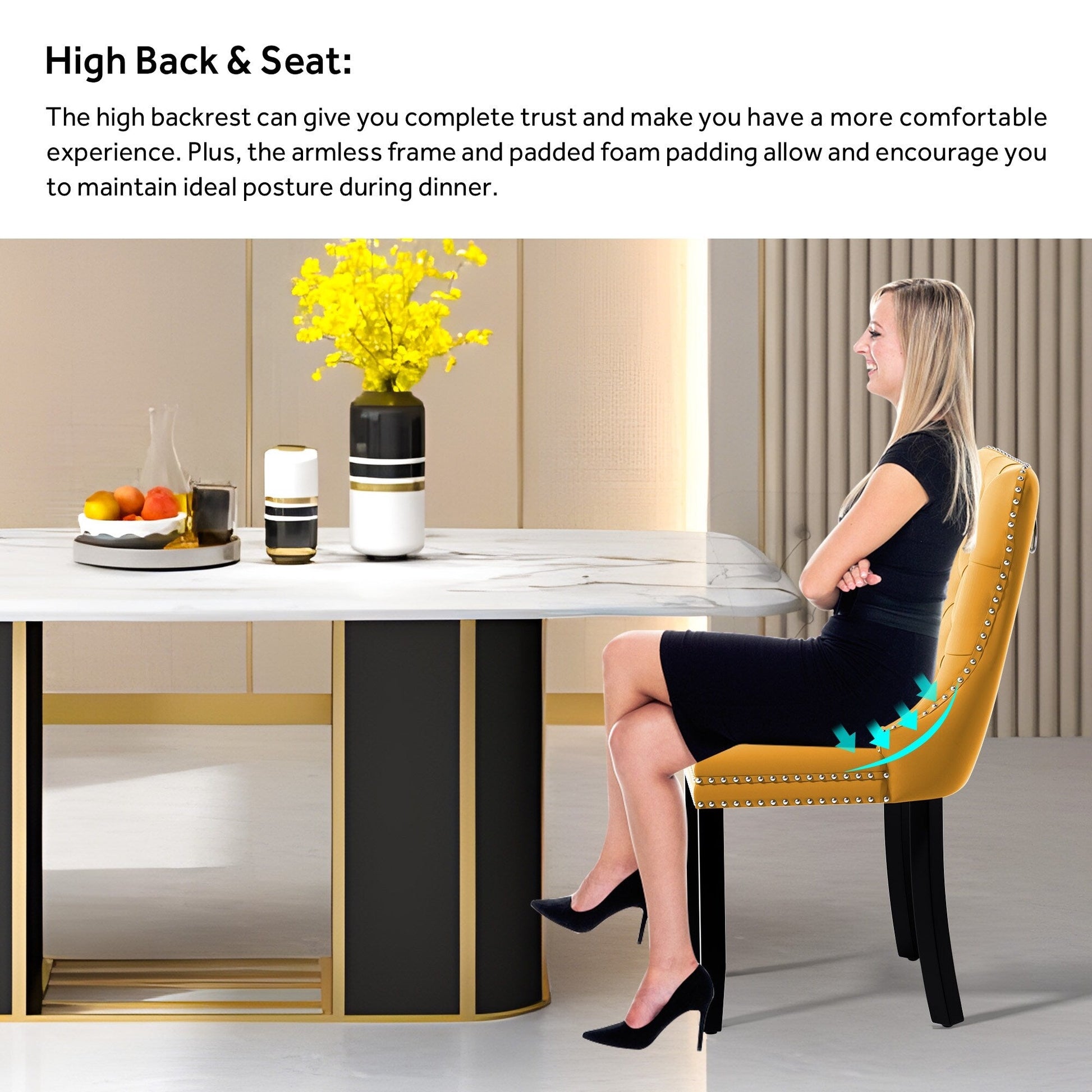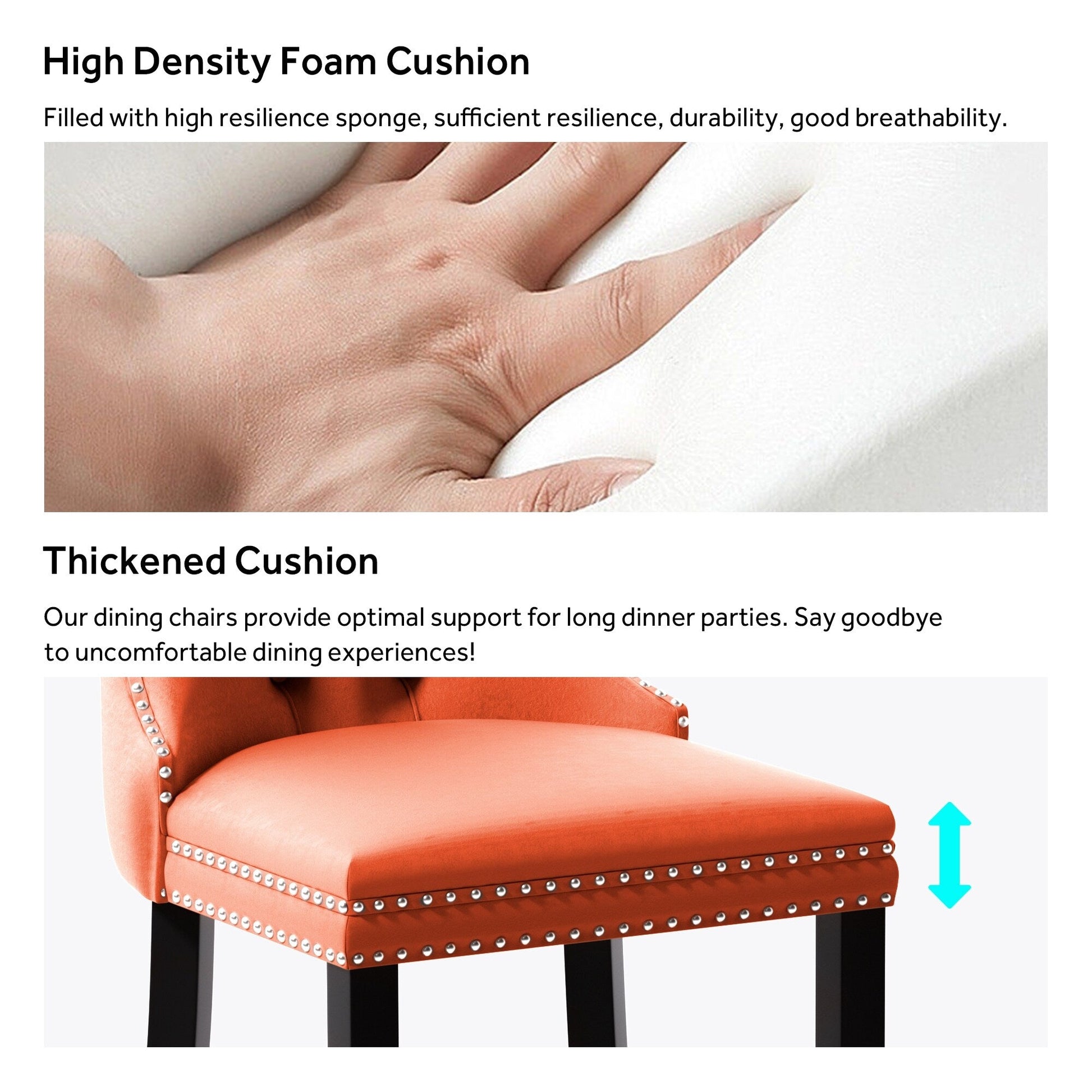 Ces chaises de salle à manger à oreilles sont fabriquées en velours de haute qualité, très résistant à l'usure et à la décoloration. Épais et luxueux, ce tissu offre un toucher délicat. Cet ensemble de chaises en velours arbore un style Mid-Century très moderne. Son dossier haut offre un soutien confortable et solide. De nombreux rivets décoratifs ornent le coussin et le dossier, lui conférant noblesse et élégance, tout en lui conférant une sensation de luxe raffiné. Nous fournissons des instructions et des vidéos de montage. Pour toute question, n'hésitez pas à nous contacter.