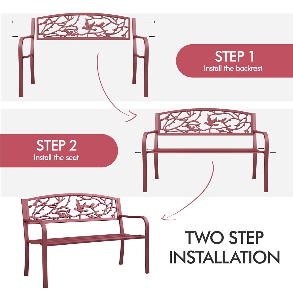 Apportez une touche de nature à votre espace extérieur avec notre banc de jardin Yaheetech de 15 m. Le motif d'oiseaux vintage du dossier embellit et favorise la circulation de l'air, tandis que l'assise légèrement incurvée, large et profonde, offre un confort optimal. Fabriqué en fer robuste avec un revêtement imperméable, ce banc est robuste et durable pour une utilisation prolongée. Avec une charge maximale de 180 kg (397 lb), il convient aux parcs, jardins, mariages, etc. Les accoudoirs sont incurvés pour plus de confort, et l'assise est soigneusement conçue avec des rayures verticales pour une meilleure circulation et une meilleure répartition du poids. Sa finition résistante aux intempéries garantit une durabilité optimale par tous les temps, et son montage est facile grâce aux outils et aux instructions fournis.