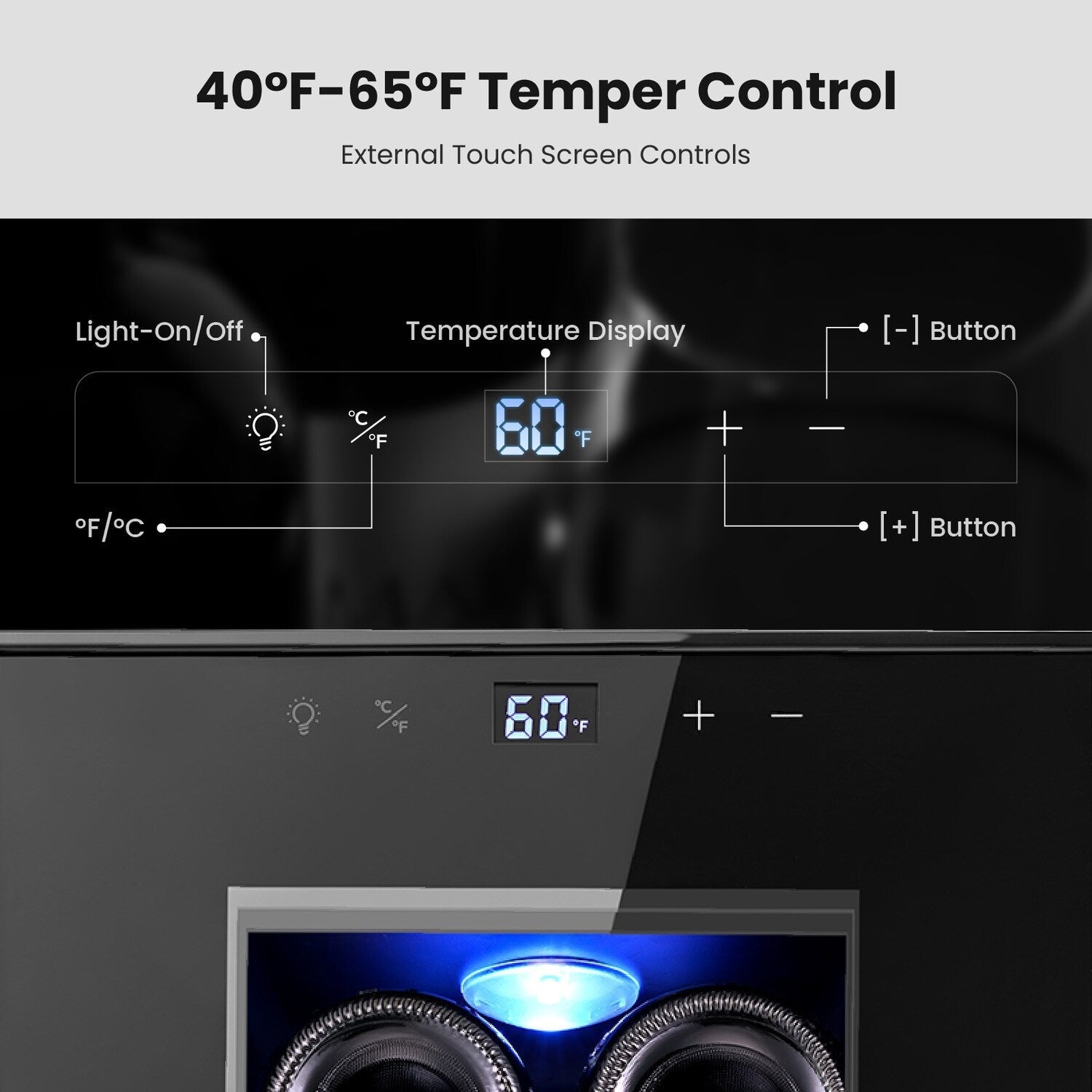 - Panneau tactile intelligent : contrôlez et surveillez sans effort les températures grâce à l'interface intuitive du panneau tactile, garantissant que vos vins sont stockés dans des conditions optimales.